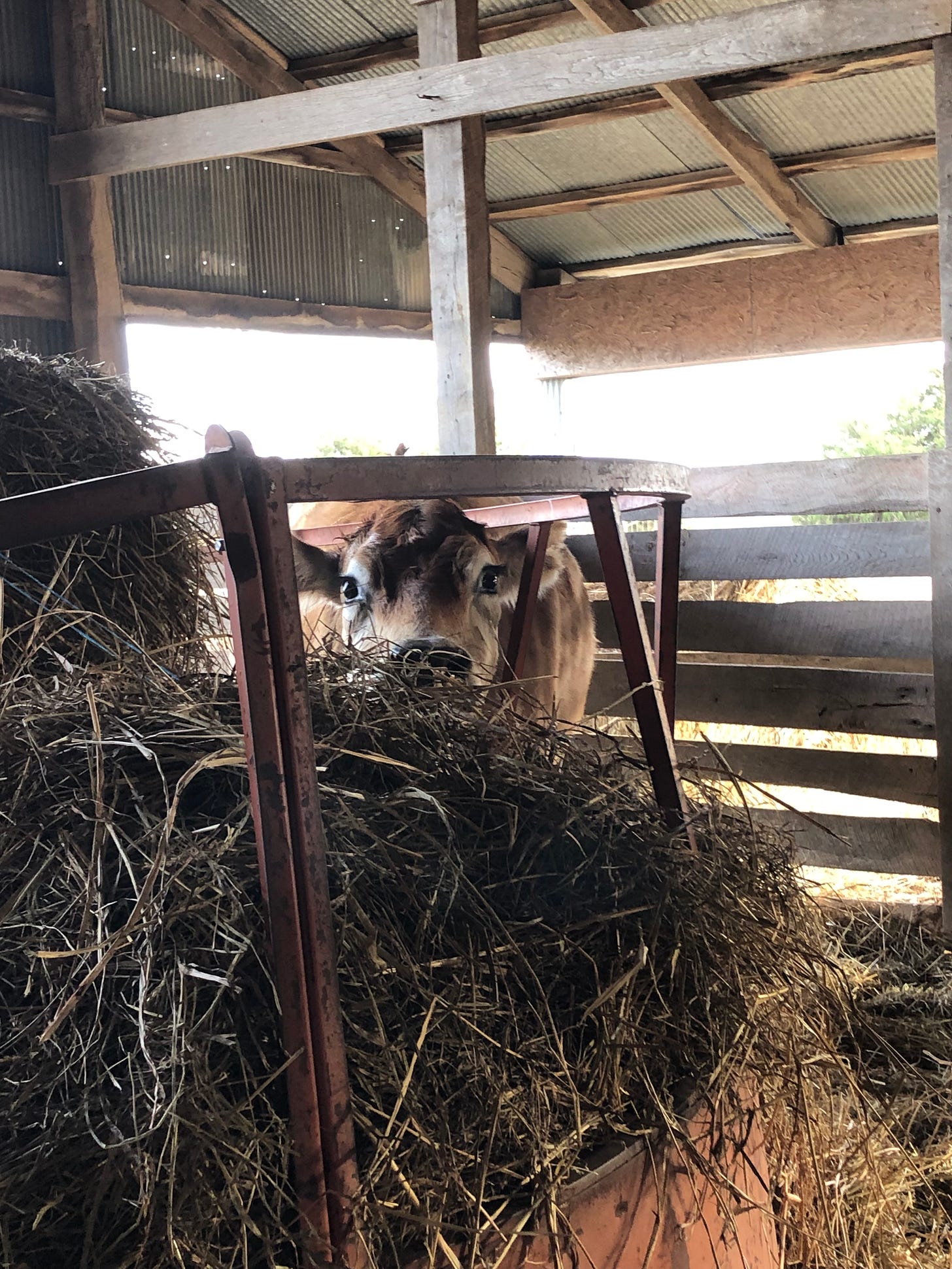 Betty watching me this morning. The three round bales in their barn are running out. They’ve started coming up for hay from the square bale stash.